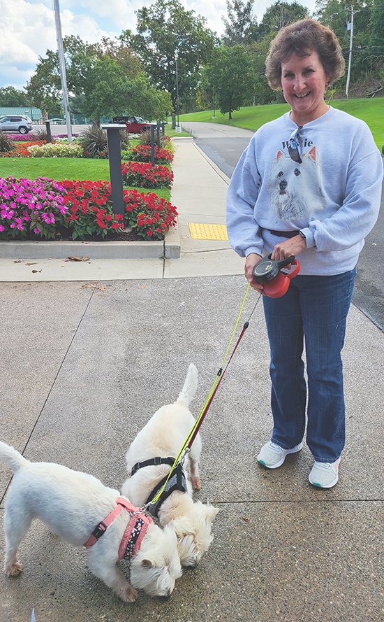 Ginny Holbein with Darcy & Cody.