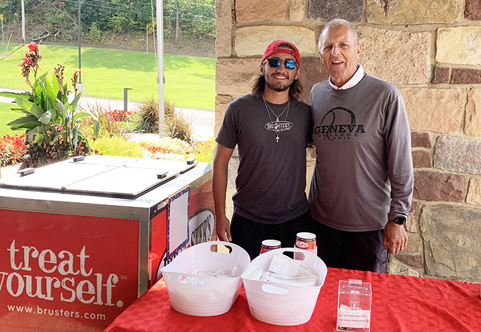 Barry Borza with the Bruster's Ice cream rep.