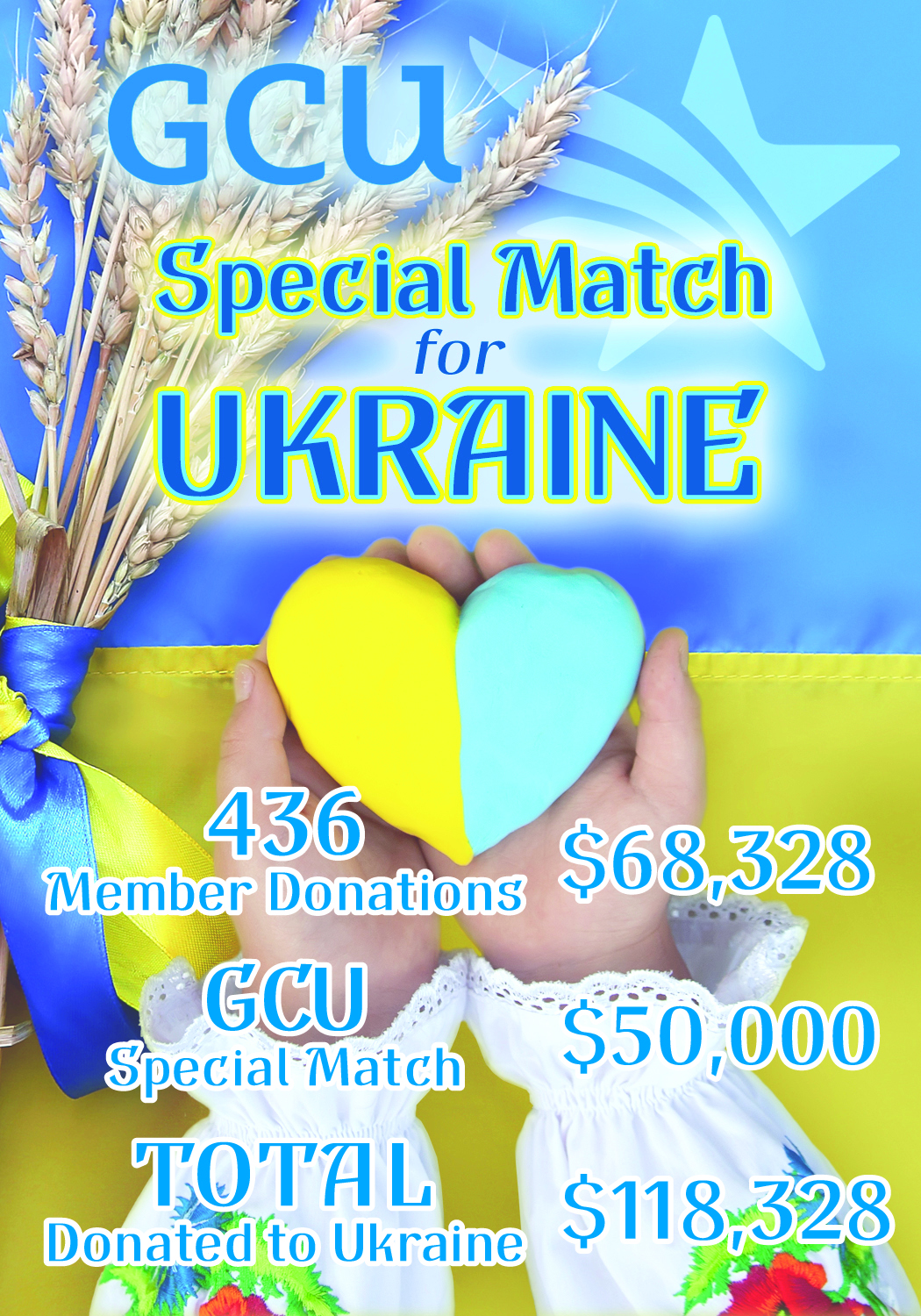 In the last several years the GCU Foundation has solicited donations from our members to provide financial support to many organizations that have supplied much needed humanitarian relief to families and individuals suffering losses due to natural disasters and other causes. The most recent effort was in assisting the victims of the tornadoes that swept through the states of Oklahoma and Kentucky and the surrounding area in early December. The GCU’s Board of Directors also committed Matching Funds to the many fundraising programs implemented by the Foundation. Soon after the war in Ukraine began, the GCU Foundation once again launched a fundraising campaign to support the humanitarian efforts so deeply needed. We are so pleased to announce that through the generosity of our membership and the $50,000.00 Matching Funds commitment of the GCU’s Board of Directors, $117,328.00 will be distributed amongst the Ukrainian Catholic Archeparchy, United Help Ukraine and the Slovak Greek Catholic Eparchy of Mukachevo. The funds raised for this effort is the most ever and on behalf of the GCU Board of Directors and the people of Ukraine, we thank you for your generosity!