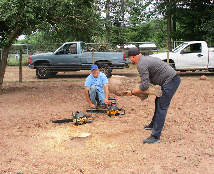 There is always plenty of grass to be mowed and of course trimming the trees, getting rid of the old trees and weeding the beautiful flower beds. Some people also take the time to visit the animals on the premises.