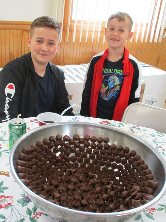 For the people who could not help outside, volunteers assembled 1,000 boxes for the sisters bake sales and a handful of them had the opportunity to remove wrappers from Hershey Kisses for their cookie baking. It was a joy to watch Fr. Hradil's 3 children unwrap the Hershey Kisses and line them up around the bowl.