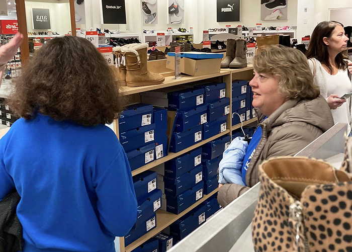 GCU employee Gina Spickerman checking out some boots.