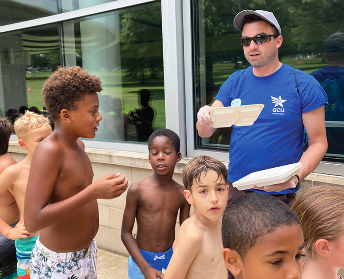 On Friday August 4, 2023, GCU donated and served lunch to over 50 Pre-K through 12th grade students at The Center in Midland. This was the end of summer bash for all the kids. The center had a variety of activities set up from bounce houses to splash pads. GCU served Pizza Joes pizza and snacks. It was a great afternoon to serve the community!