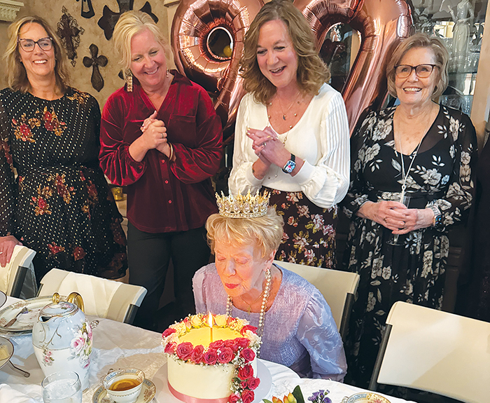 Hosted by her daughter Marilyn Bonaparte and her granddaughter Brooke Bonaparte Pingenot, a catered High Tea Party was held at Marilyn’s home, where Peggy resides in Prosper, TX.